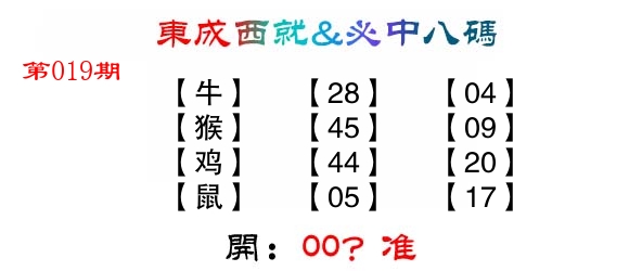 | 017期: ⑧肖 | 鸡牛狗猴马兔龙鼠 | 牛05中 |