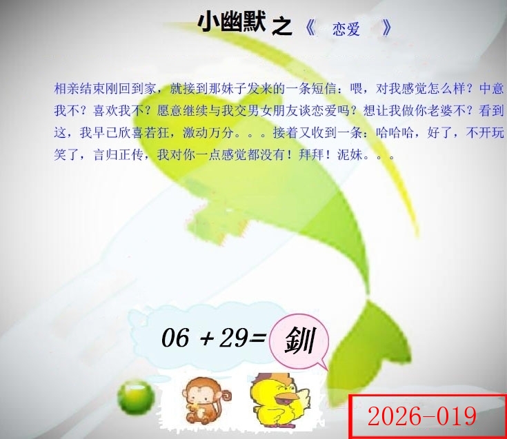 | 019期:公式一肖 | 019期:公式一波 | 019期:公式单双 |