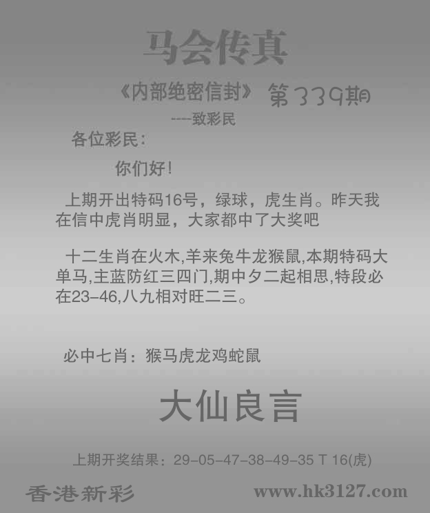 | 337期 | 猴 | 0尾 | 蓝单 | 07-16 | 16虎 |