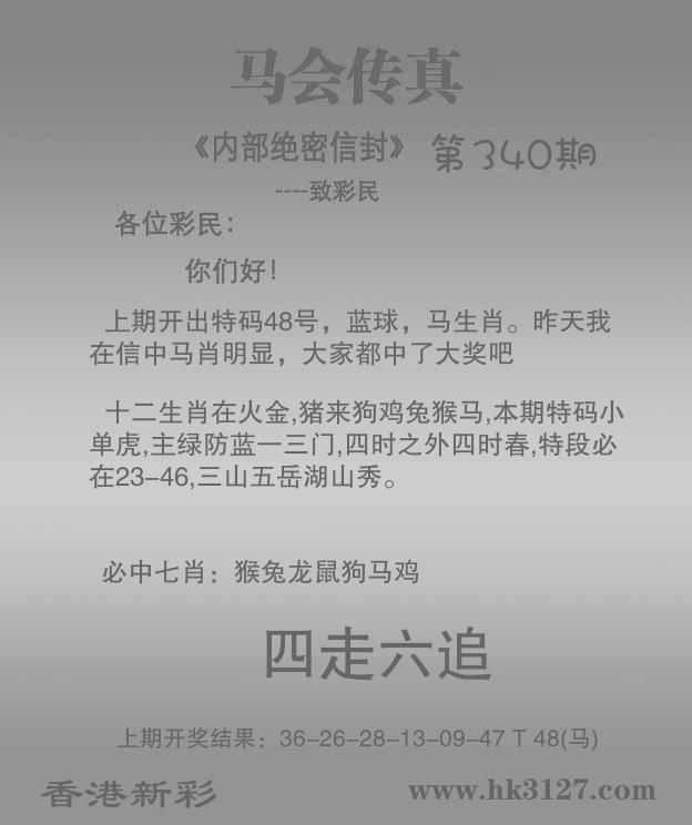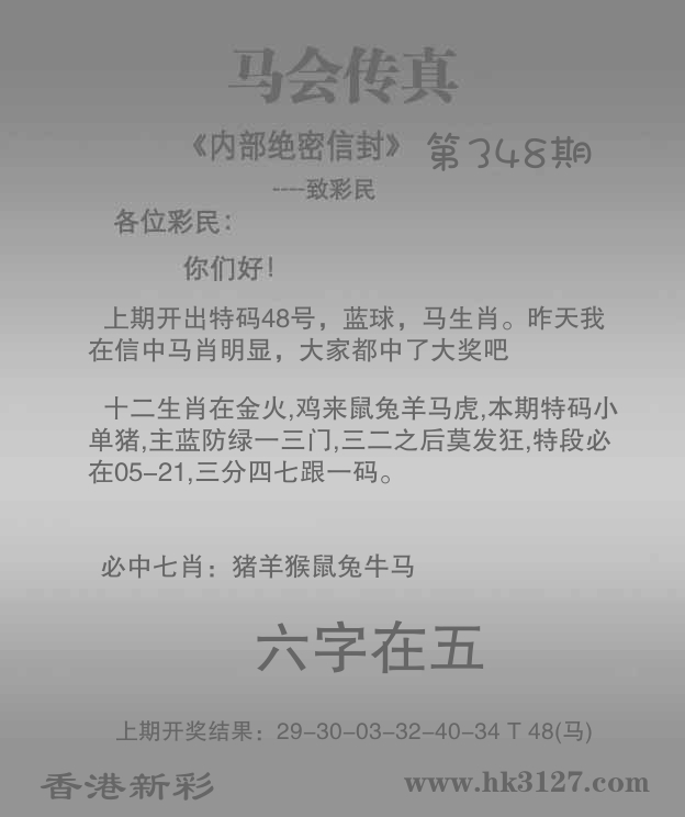 | 347期: ⑥肖 | 狗羊马龙兔蛇 | 马48中 |