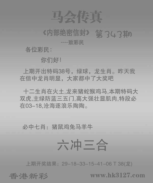 | 338期 | 马 | 1尾 | 绿双 | 10-19 | 16虎 |