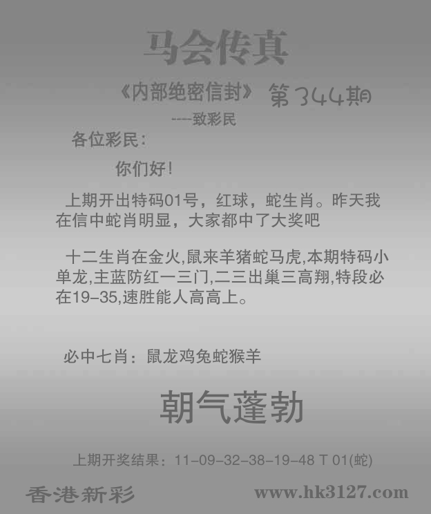 | 343期: ⑥肖 | 蛇牛鼠鸡马羊 | 蛇01中 |