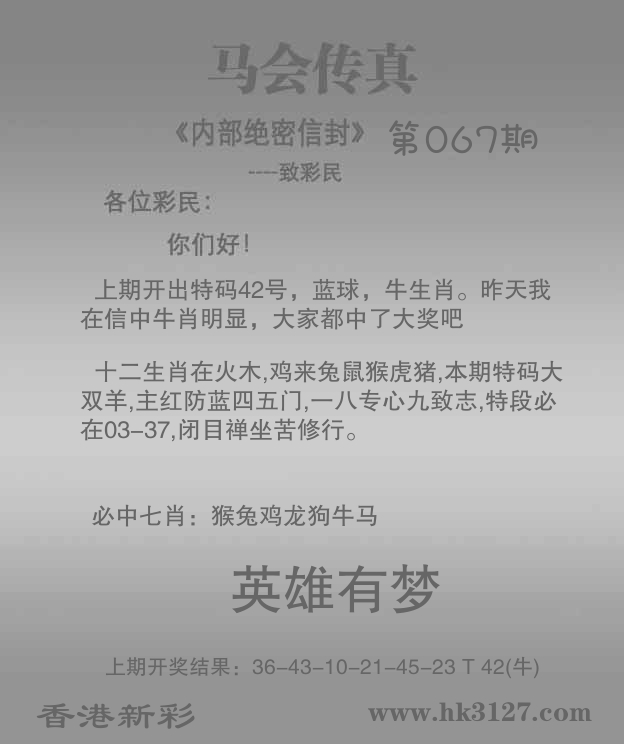 | 067期: ⑦肖 | 猴羊兔虎狗鼠马 | 马25中 |