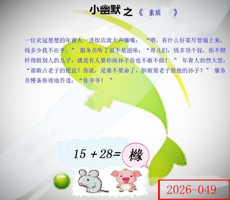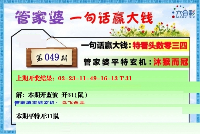 | 049期:公式一肖 | 049期:公式一波 | 049期:公式单双 |