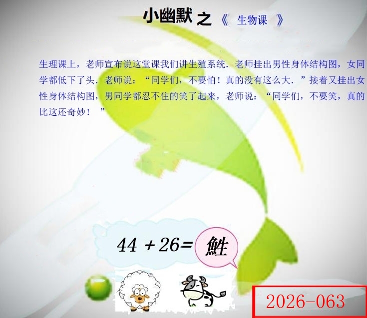 | 063期 | 羊 | 7尾 | 红双 | 26-35 | 46鸡 |