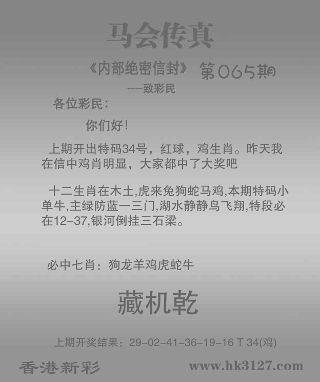 | 065期: ⑥肖 | 狗牛龙虎猪蛇 | 羊48中 |
