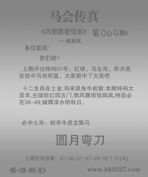 | 069期: ⑥肖 | 狗猪猴虎马鸡 | 牛06中 |