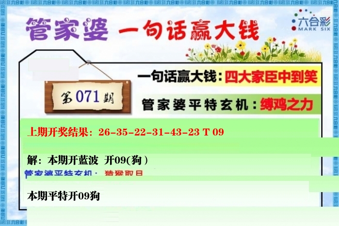 | 071期: ⑨肖 | 羊猴牛猪鸡马鼠狗龙 | ????中 |