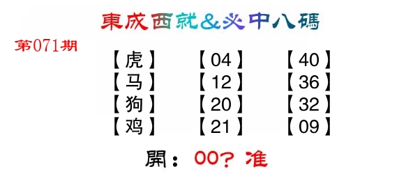 | 071期: ⑧肖 | 羊猴牛猪鸡马鼠狗 | ????中 |