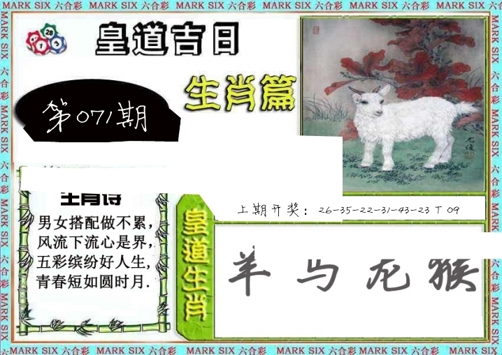 | 071期: ⑥肖 | 羊猴牛猪鸡马 | ????中 |